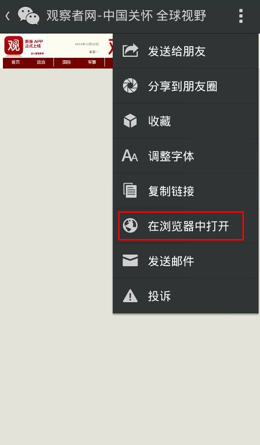 如果您正用微信扫描二维码进入此页面,请点击微信右上角功能菜单,选择“在浏览器中打开”,就能正常下载了: