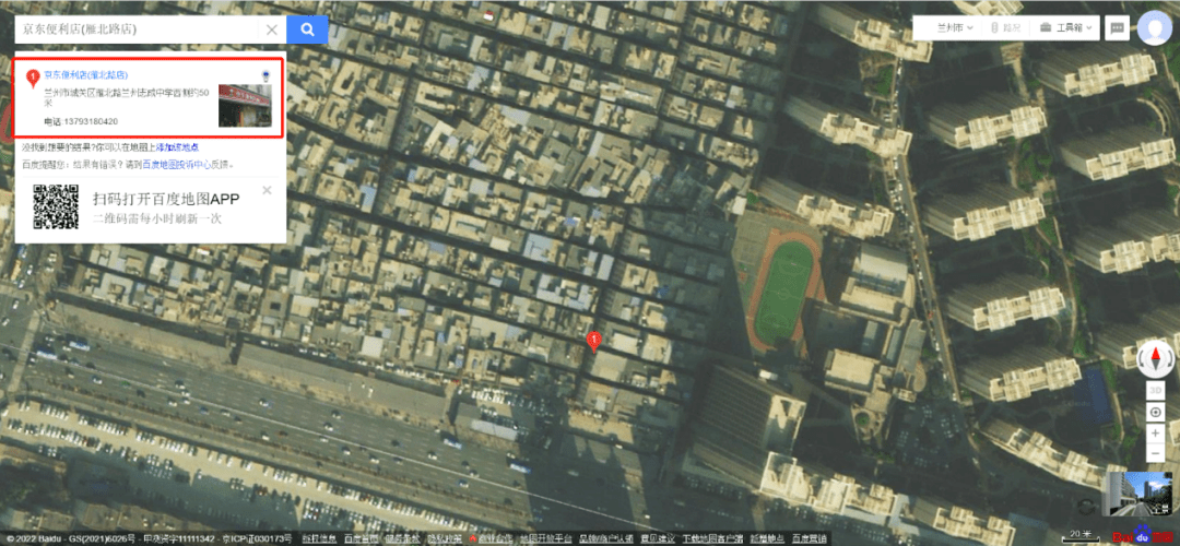 距“陈记鲜面铺”10米左右处,还有一家京东便利店分店“雁北路店”,地址同样显示在“兰州市城关区雁北路兰州志成中学西侧约50米”处,且地图上公布的店面照片同样与视频内容相符。由此可以确定,网传视频的拍摄地点在甘肃省兰州市城关区的雁北路附近。