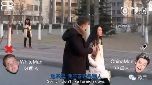 但白人战队首轮出击似乎遇到了一点小困难,同样的“美女能不能给我你电话”的开场白,却得到了不一样的结果。